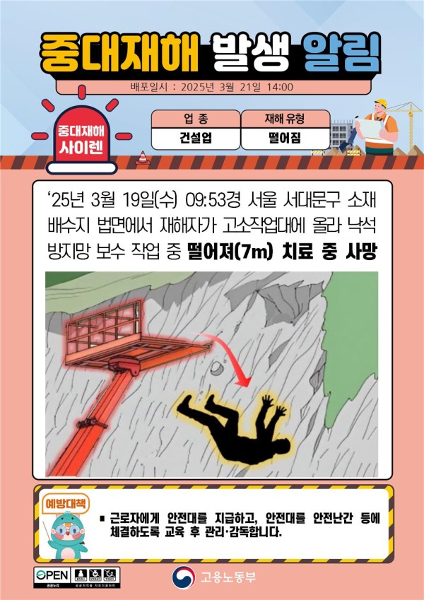 2025년 3월 중대재해 발생 알림