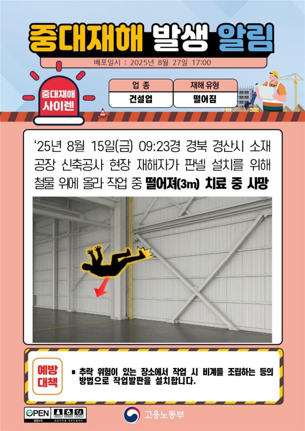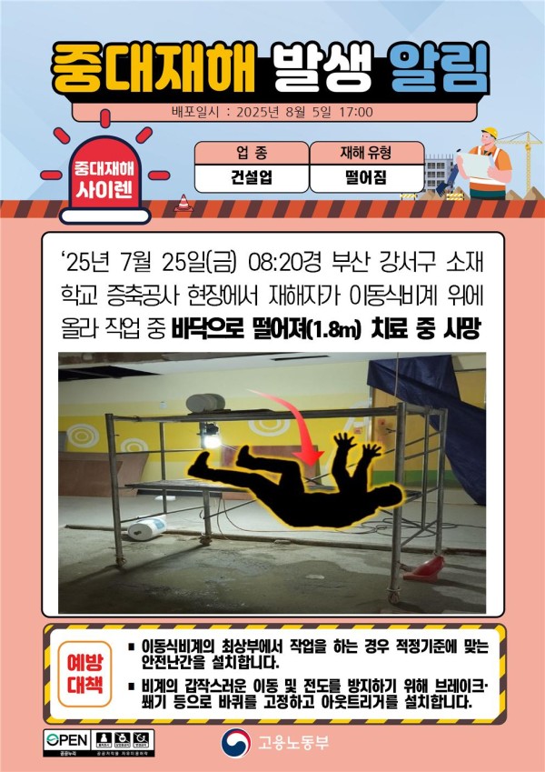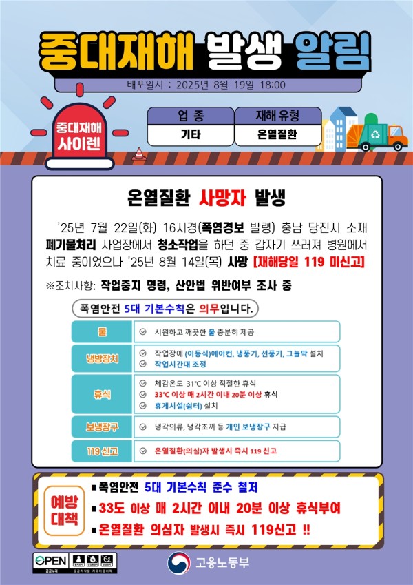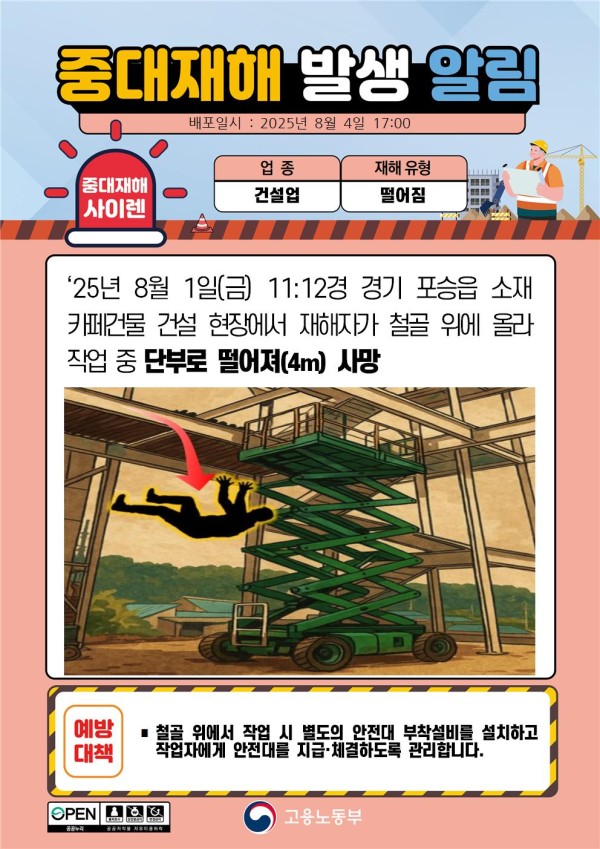 2025년 8월 중대재해 발생 알림