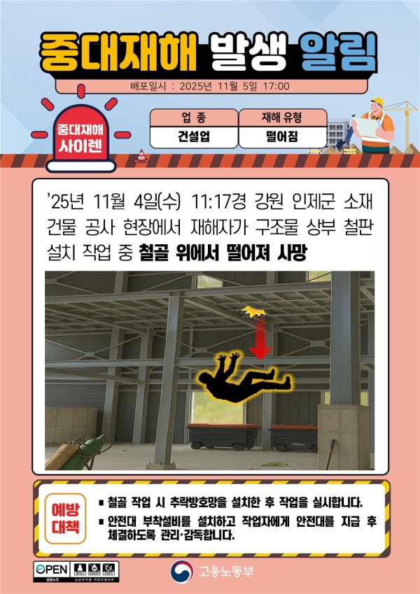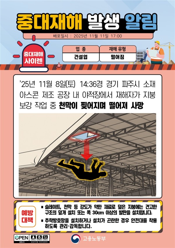 2025년 11월 중대재해 발생 알림 페이지 정보 작성자 최고관리자 댓글 0건 조회 23회 작성일 25-11-28 11:11 목록 본문 2025년 11월 중대재해 발생 알림 다음글2025년 10월 중대재해 발생 알림 25.11.06 댓글 0 댓글목록 등록된 댓글이 없습니다.